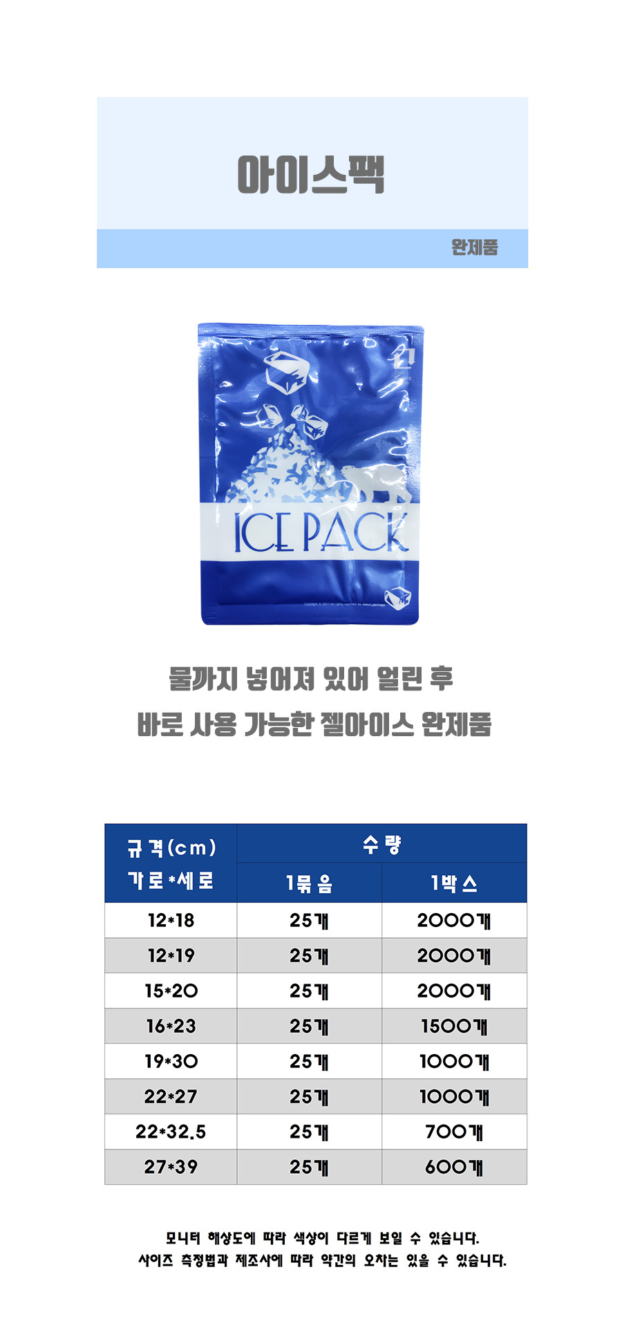 아이스팩 완제품
