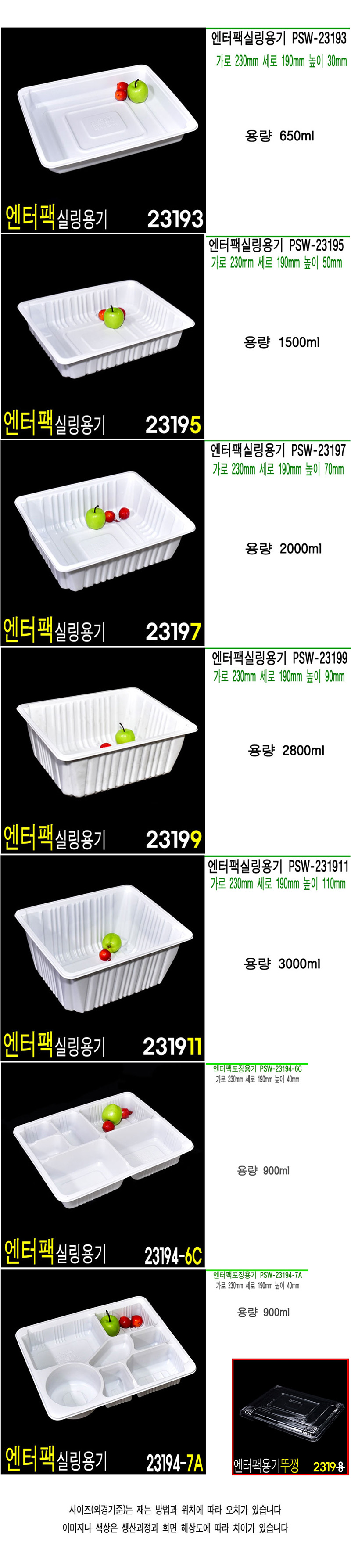 엔터팩 실링용기 PSW-2319시리즈 화이트/블랙